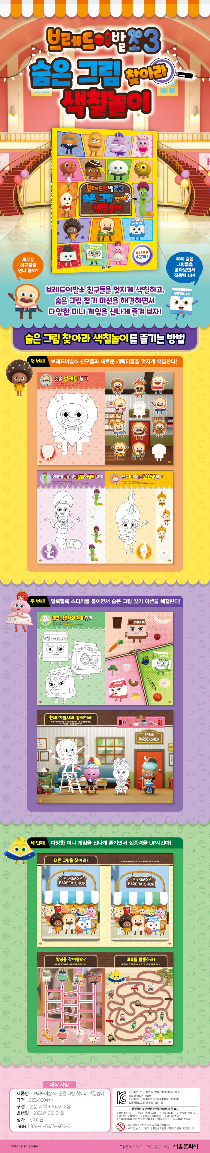 천재 이발사 브레드와 친구들이 펼치는 엉뚱하고 재미있는 베이커리타운 이야기. 숨어 있는 친구들을 열심히 찾다 보면 집중력 & 기억력 & 관찰력이 전부 커진다.