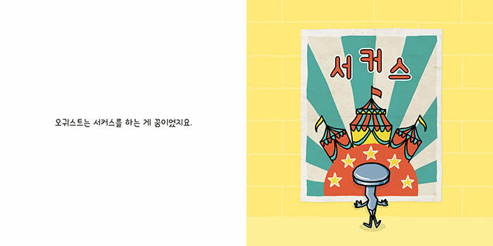 못 오귀스트의 멋진 서커스 공연 이야기!오귀스트는 못이에요. 서커스 공연을 하는 게 꿈이지요. 사촌들과 묘기 공연을 할 기회를 잡았지만, 사촌들은 몸이 아파 드러눕고 말아요. 결국 스턴트맨인 접시 브루스, 리와 함께 저글링 공연을 하게 되었는데, 그만 바나나 조세핀을 밟고는 미끄러졌답니다. 모두가 웃음을 터트리는 순간, 오귀스트에게 좋은 생각이 떠올랐어요. 과연 어떤 생각일까요?