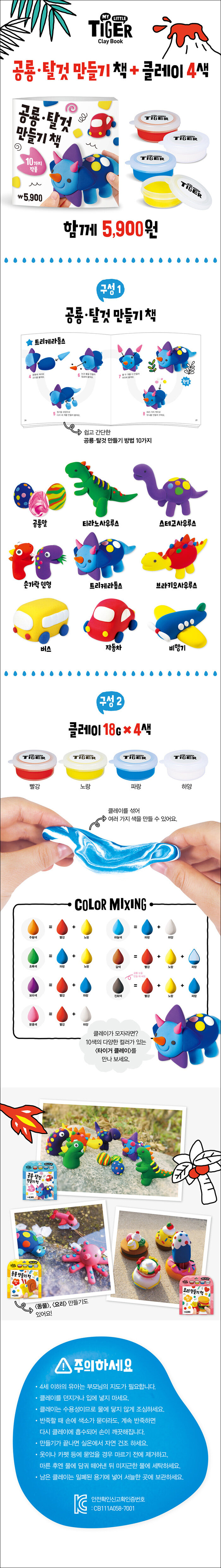 * 제품의 특징 및 셀링 포인트-앞에는 만들기책, 뒤에는 클레이 4색이 들어있는 형태의 패키지 입니다.