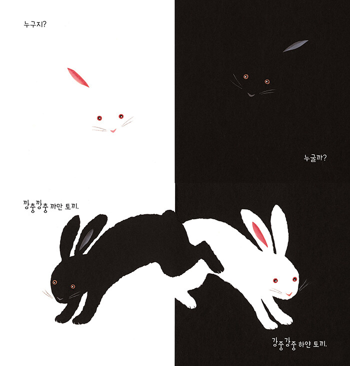 어떤 동물인지 알아맞혀 보세요! 어둠 속에서 빛나는 노란 눈, 뿔처럼 뻗은 머리털이 보입니다. 이 동물은 과연 누굴까요? 동물의 어느 한 부분만 그려진 그림을 보고 아이는 이미지를 요리조리 이어 붙여 어떤 동물일지 상상합니다. 두근거리는 마음으로 책장을 넘기면 짜잔! 부엉이가 아이를 맞아 줍니다. 『누구지? 누굴까?』는 동물의 일부분을 보고 어떤 동물인지 알아맞히는 놀이로 가득한 그림책입니다. 이제 막 책 놀이를 시작한 아이들이 흥미를 가지고 볼 수 있는 책이지요. 책장을 넘길 때마다 생쥐, 물고기, 토끼, 고슴도치 등 여러 동물이 차례로 등장합니다. 자, 다음은 어떤 동물이 나타날까요? ‘이 동물은 누구지? 누굴까?’ 상상하고 알아맞히는 과정 자체가 즐거운 놀이가 되고, 상상의 나래를 펴게 돕습니다. 누구인지 묻고 답하며 아이 스스로 생각할 수 있도록 이끌어주면서 재미있게 읽어 보세요.
