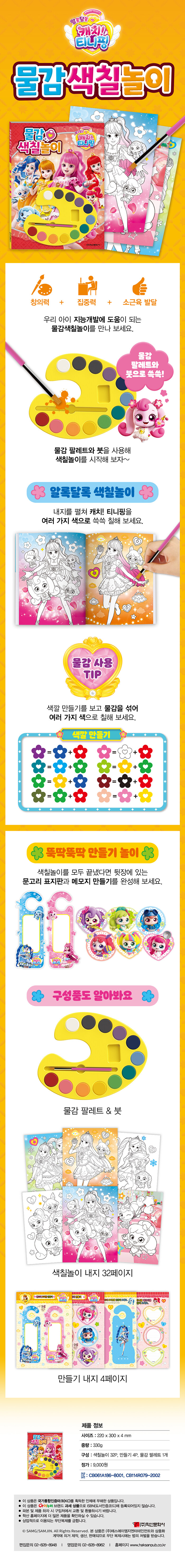 12가지 물감으로 여러 가지 색을 만들어 색깔 익히기를 통해 미술적 감각을 기를 수 있다. 아이가 좋아하는 캐릭터를 칠하다 보면 집중력과 주의력을 높여주며 동시에 창의력과 색채 감각이 향상된다. 물감 색칠놀이는 만들기 2장이 들어 있어 가위로 오리고 만드는 활동을 통해 큰 재미를 느낄 수 있다.