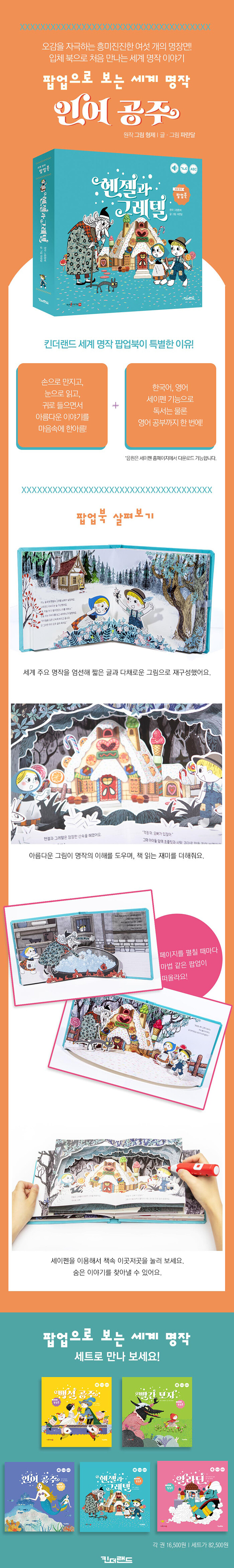 또한 팝업북에서는 쉽게 만날 수 없었던 세이펜 기능을 추가했어요. 직접 책 이곳저곳을 누르며 전문 성우들이 직접 읽어 주는 이야기를 듣다 보면, 어느새 헨젤과 그레텔이 되어 맛있는 과자 집을 보고 침을 꿀꺽 삼키게 되지요. 글뿐만 아니라 캐릭터와 배경 곳곳에 숨은 다양한 음원들은 또 어디에서 어떤 이야기가 흘러나올까 즐거운 상상을 하게 만든답니다. 한국어뿐만 아니라 영어 이야기도 함께 수록되어 있어, 독서와 영어 공부를 한 번에 할 수 있어요.