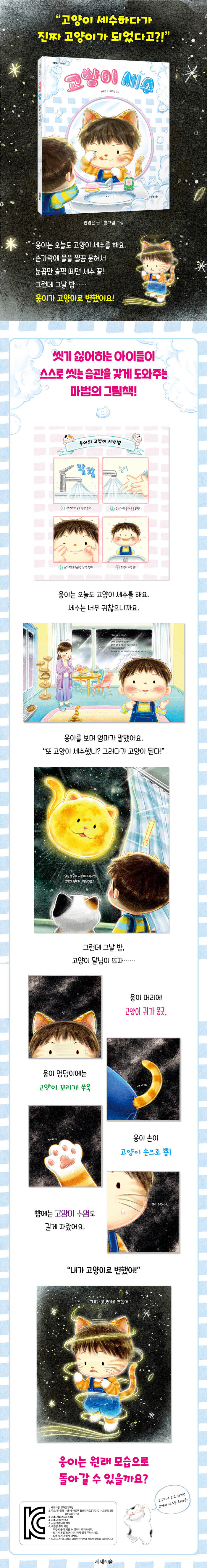 제제의 그림책 시리즈. 세수하기 싫어서 고양이 세수를 하던 웅이가 어느 날 진짜 고양이가 되어 버린 이야기를 담은 그림책이다. 기발한 상상력이 넘치는 이야기를 통해 씻기 싫어하는 아이들에게 청결에 관한 올바른 생활 습관을 길러 준다.