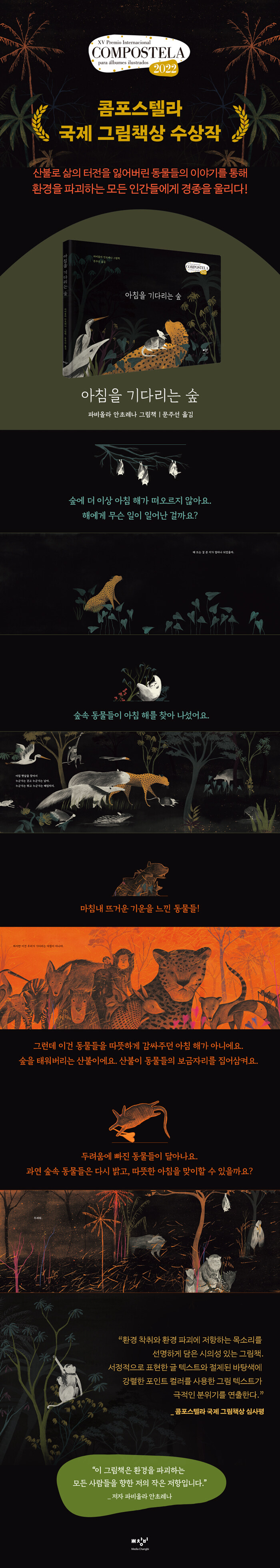 그림 텍스트가 극적인 분위기를 연출한다.” - 콤포스텔라 국제 그림책상 심사평