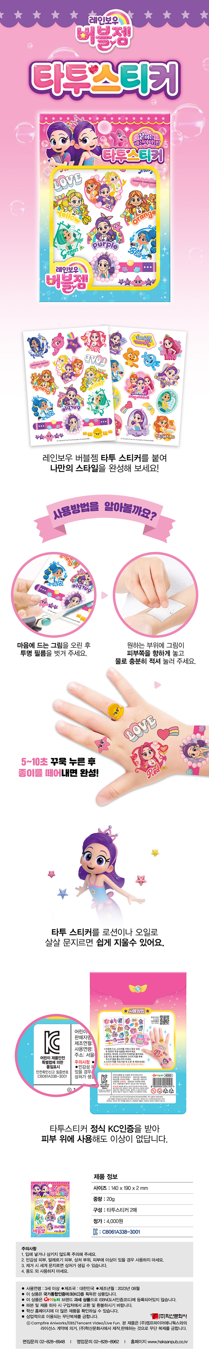 알록달록 레인보우 버블젬 공주들을 타투 스티커로 만난다. 여름에 인기 최고인 타투 스티커를 붙여 보자. 더운 여름철 레인보우 버블젬 그림이 들어간 타투 스티커로 손목이나 팔뚝에 포인트를 주면 인기 만점 패셔니스타가 될 것이다.