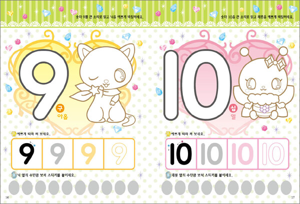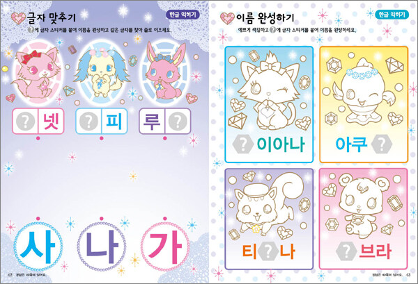 쥬얼펫 친구들을 예쁘게 색칠하며 숫자 공부, 한글 공부를 재미있게 할 수 있는 워크북이다. 쥬얼펫 친구들을 예쁘게 색칠하고 보석의 수 만큼 스티커를 붙이며 수의 개념을 익힐 수 있다. 또한, 한글을 큰 소리로 읽고 순서에 맞게 따라 써 보며 자음과 모음을 배우게 된다.