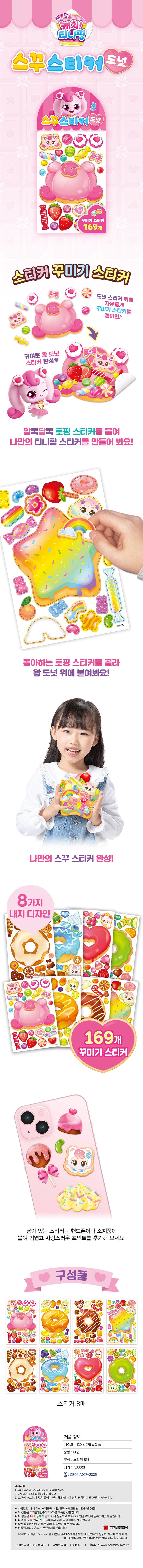 다양한 디자인의 도넛과 토핑 스티커들이 8장 들어있어요.