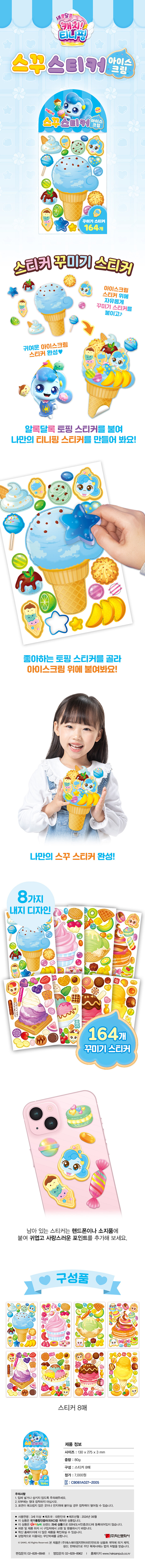 먹음직스러운 아이스크림 스티커 위에 자유롭게 꾸미기 스티커를 붙이면 귀여운 아이스크림 스티커 완성된다. 다양한 디자인의 아이스크림과 토핑 스티커들이 8장 들어있다.