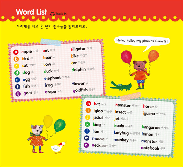 또한 챈트를 듣고 따라 부르며 직접 스티커를 붙이는 놀이를 통해 자연스럽게 복습을 할 수 있도록 했다. 책 끝에는 책 전체의 음가와 단어를 다시 한 번 정리하도록 Word List를 신나는 챈트로 제시했다. 구연동화와 챈트가 담긴 오디오 CD를 함께 제공한다.