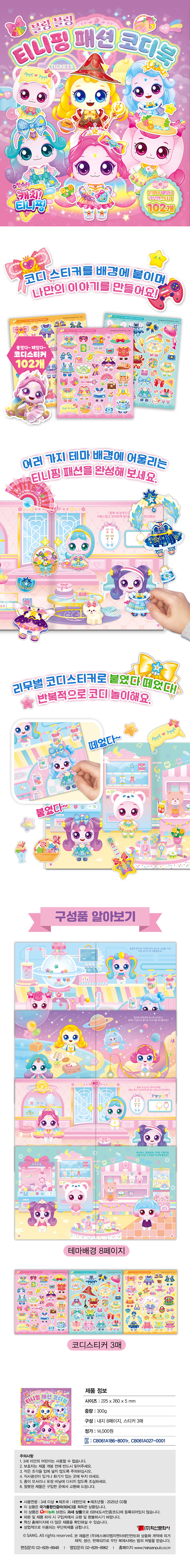 붙였다 떼었다 리무벌 스티커 102개로 티니핑들을 예쁘게 꾸며보자. 배경에 어울리는 코디를 입히고, 캐릭터 스티커를 배경판에 붙이며 나만의 이야기를 만들 수 있다.