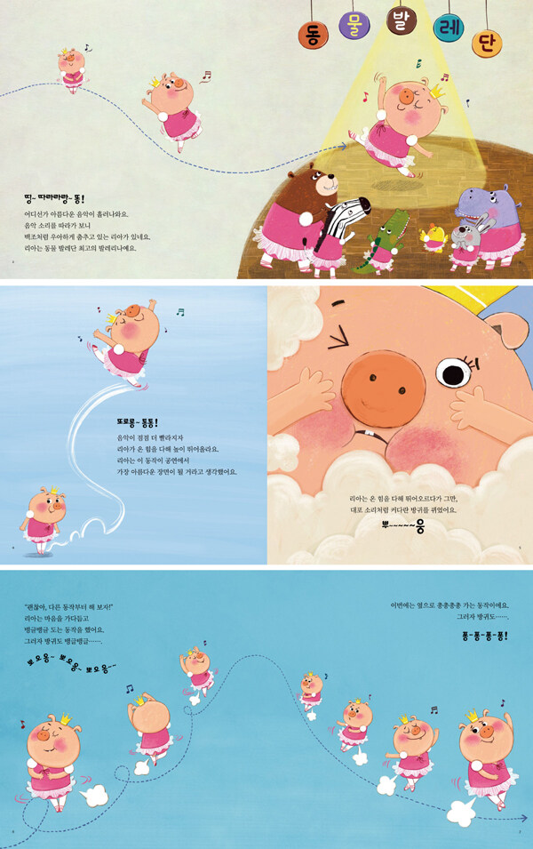 따뜻한 색채와 동물들의 표정을 익살스럽게 표현하여 재미를 더한다.