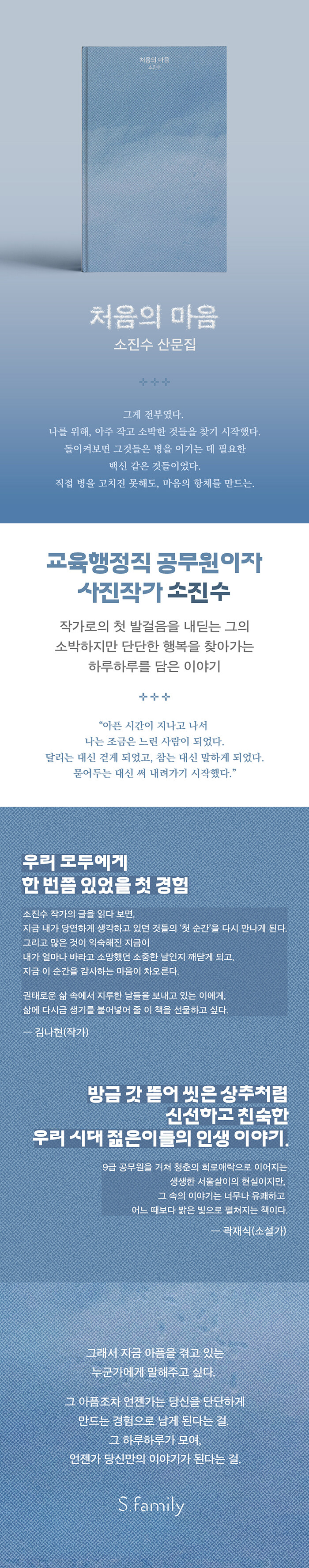 『처음의 마음』은 잘 해내는 사람의 이야기라기보다, 흔들리면서도 계속 가는 사람의 이야기다. 이 책은 어떤 결론을 강요하지 않는다. 대신 독자 각자가 자신의 ‘처음’을 떠올릴 수 있도록 여백을 남긴다. 처음 좋아했던 일, 처음 품었던 꿈, 처음 누군가를 응원하던 마음, 아직 포기하지 않은 무언가. 저자의 문장은 독자의 기억을 자극하는 작은 질문처럼 다가온다.