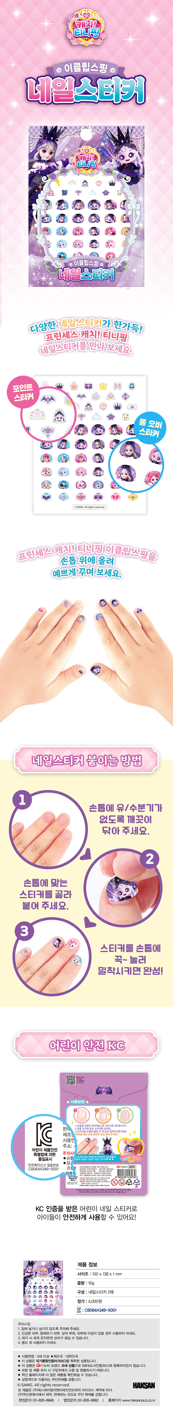 내 손으로 직접 꾸미는 네일아트. 블링블링 다양한 네일스티커로 손톱을 예쁘게 변신시켜 주자. 크기 별 손톱이 다양하게 들어 있어 내 맘대로 골라서 붙일 수 있다. 포인트를 줄 수 있는 데코스티커와 내가 좋아하는 캐릭터로 손톱 전체를 꾸밀 수 있는 풀오버스티커 까지. 국내에서 제작하고 무독성 스티커로 안심하고 놀이하자.