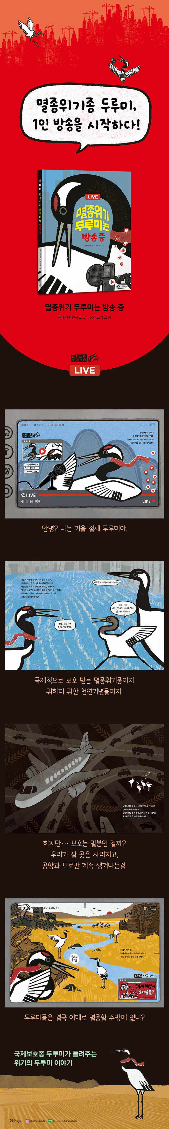 국제보호종 두루미, 1인 방송을 시작하다!멸종위기 Ⅰ급이자 천연기념물 제202호로 지정된 국제보호종 두루미가 올 겨울에도 한국을 찾아왔습니다. 두 주 동안 무려 1,500킬로미터를 날아온 두루미는 반갑게 인사하며 구독자들과 화기애애한 대화를 이어갑니다. 농사가 끝난 논에 물을 채워 서식지를 만들어 준 사람들에게 고마운 인사를 전하기도 해요.