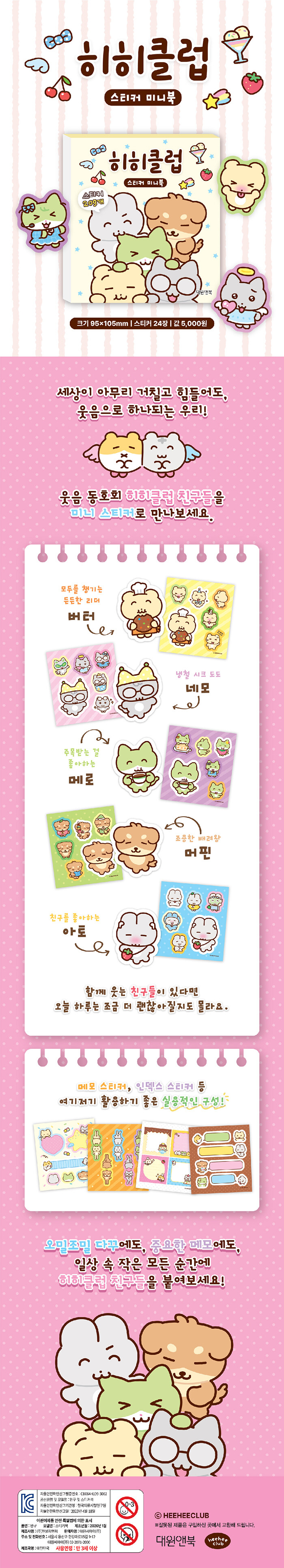 히히클럽 스티커 미니북은 캐릭터와 메모, 인덱스, 네임텍 등 총 209개의 다양한 테마를 알차게 담고 있습니다.