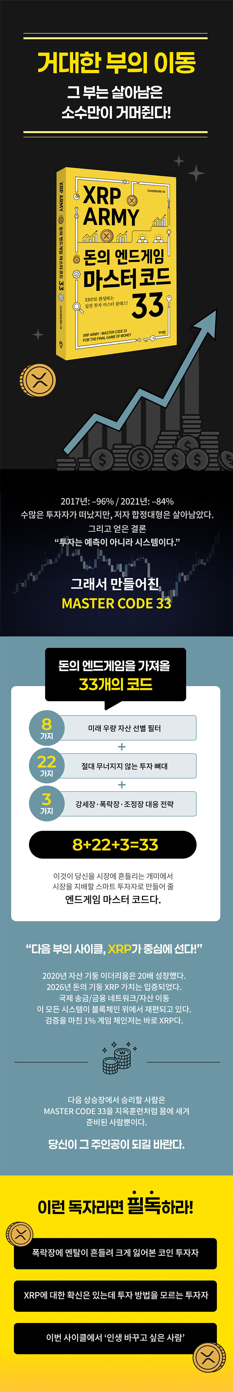 돈의 엔드게임은 이미 시작되었다. MASTER CODE 33을 몸에 새기는 순간, 당신은 시장에 휘둘리는 개미가 아니라 다가올 거대한 부의 사이클에서 주인공이 된다.