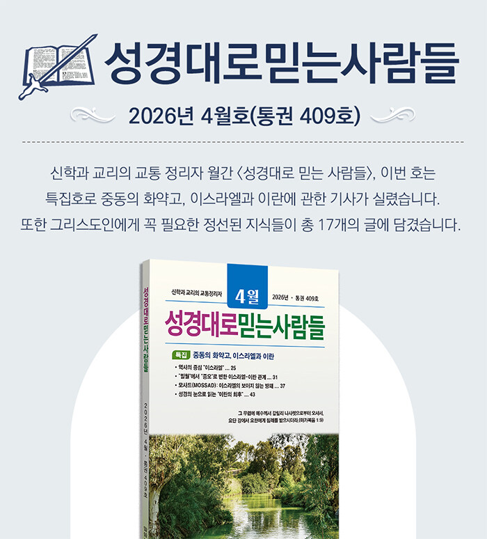 《성경대로 믿는 사람들》이 이 땅에 신학과 교리의 교통 정리자로서 그 몫을 다해 줄 것을 기대한다.