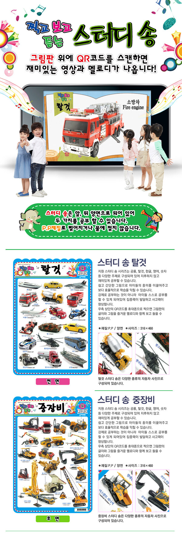 쉽고 간단한 그림으로 아이들의 흥미를 이끌어주어 스스로 공부할 수 있게 한다. 우측 상단의 QR코드를 휴대폰으로 스캔하면 그림판의 글자와 그림을 즐거운 멜로디와 함께 보고 들을 수 있다. 양면으로 되어있고 재질은 P.P이다.