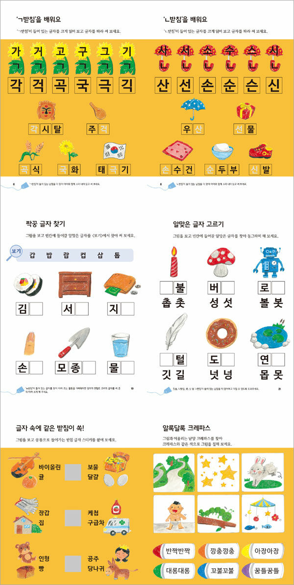 · ㄱ, ㄴ, ㄹ, ㅁ, ㅂ, ㅅ, ㅇ 받침 배우기