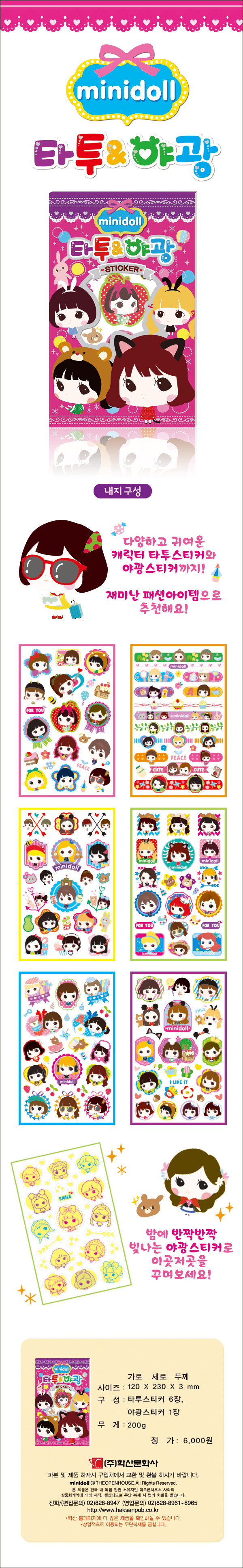 요즘 최강 인기몰이중인 예쁘고 깜찍한 미니돌 캐릭터로 구성된 타투&야광스티커를 만나보세요!