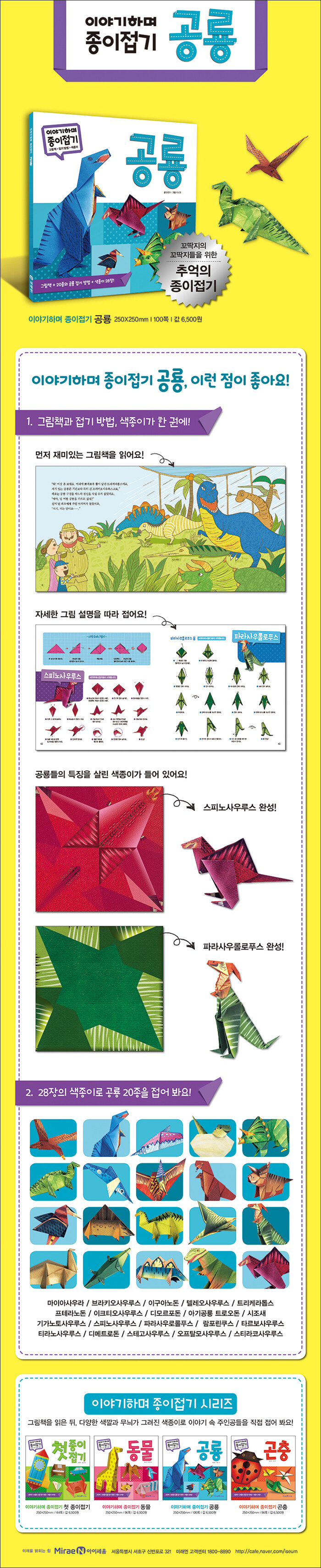 이야기를 읽고, 색종이를 이리저리 접으면 공룡 완성!종이접기는 전 세계적으로 아이들이 무척 좋아하는 놀이지요. 네모난 평면의 종이가 입체적인