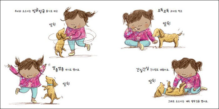 어떻게 해야 오스카의 딸꾹질이 뚝 그칠까요? 사랑하는 강아지 친구 오스카의 딸꾹질을 그치게 해 주려고 온갖 방법을 다 동원하는 꼬마 아가씨 루비의 순수하고 따뜻한 마음을 <딸꾹!>에서 만나 보세요!