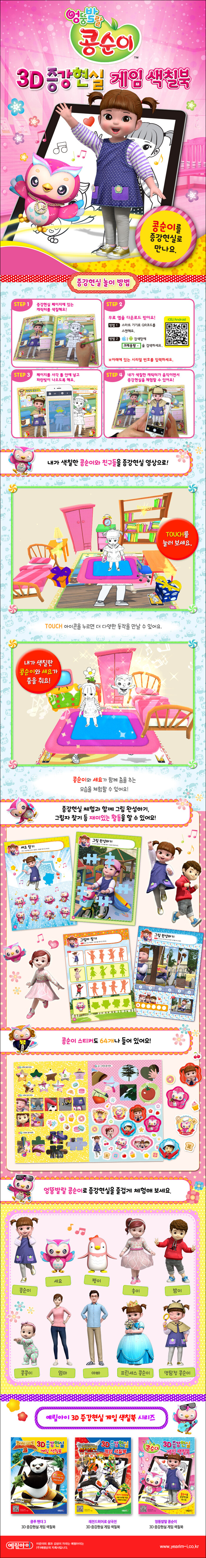 인기 캐릭터 엉뚱발랄 콩순이가 볼수록 신기한 증강현실로 찾아왔어요!장난감으로 오랫동안 사랑을 받았던 콩순이가 애니메이션 방영으로 더 큰 인기를 누리고 있어요. 엉뚱발랑 콩순이를 예림아이의 신기한 3D 증강현실로 만나 보세요. 내가 색칠한 대로 콩순이와 친구들이 생생하게 살아 움직여요.