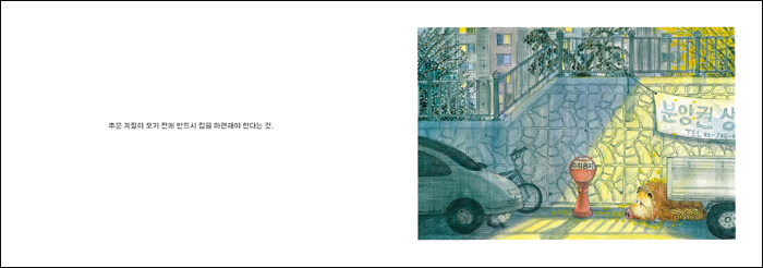 제1회 보림창작스튜디오 수상작. 어느 날 아침, 눈을 떴더니 집이 없어진 멧돼지들. 멧돼지 가족은 용감하고 유연하게 도시를 누벼서 결국 집을 찾아낸다. 이야기는 그 모험을 흥미진진, 따라간다. 하지만 아파트 창들이 노랗게 빛나는 가을 저녁, 트럭 곁에 쭈그리고 앉아 도둑고양이와 눈을 마주치는 멧돼지를 볼 때, 어쩐지 좀 서글프다. 남 일 같지 않은, 웃픈 멧돼지 가족의 도시 방랑기다.