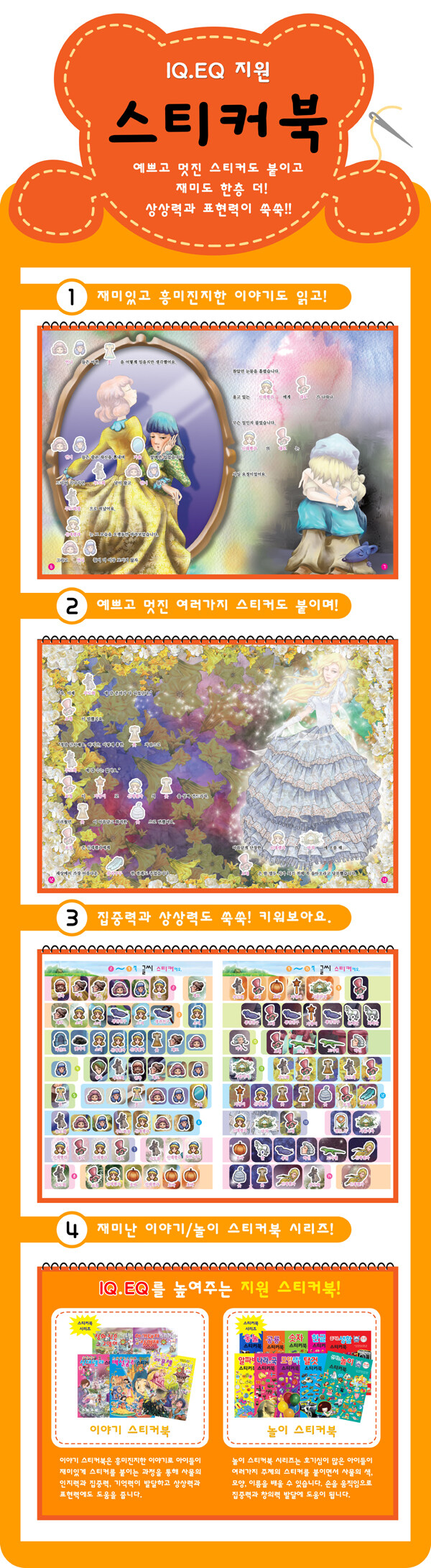 단순한 붙이기 놀이에 아이가 지루해 하지 않도록 각 책마다 특성에 맞는 재미있는 글과 그림,