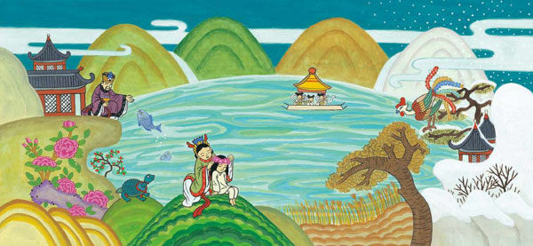 어디선가 학이 날아와 아이가 배고파 울면 젖이 나오는 여의주를 입에 물려주었지.