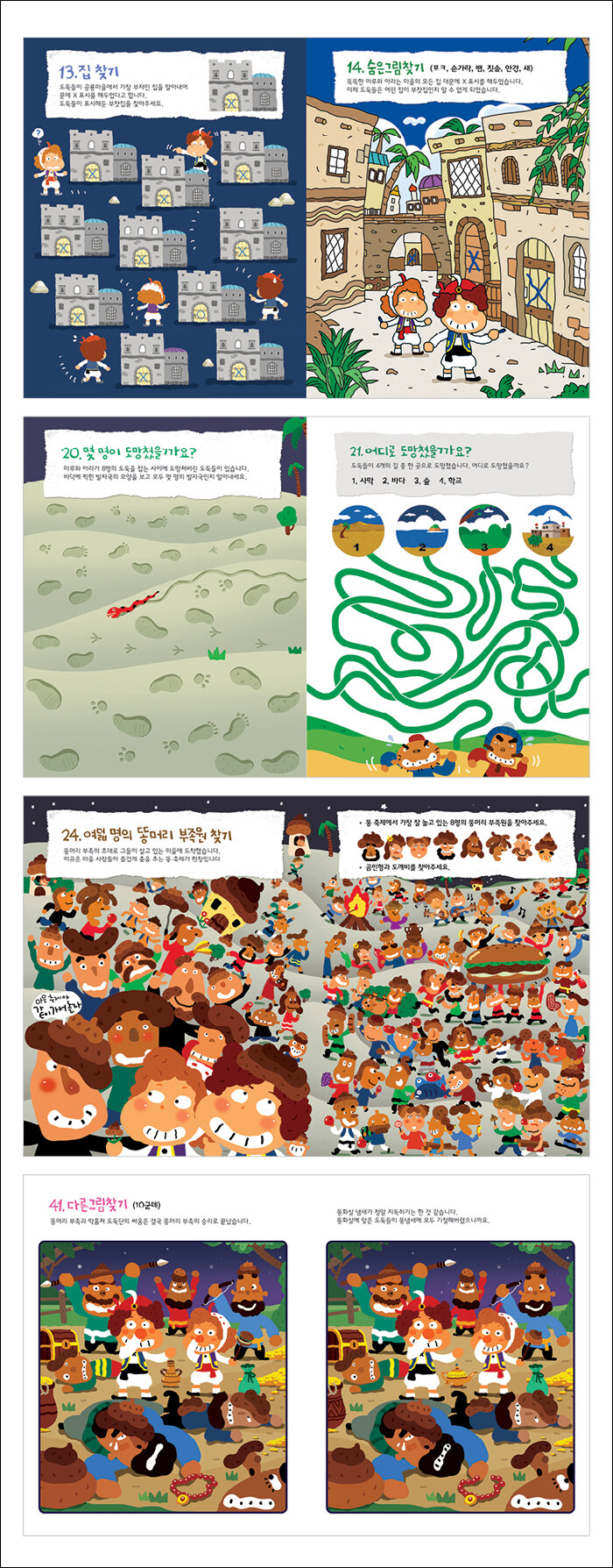 책장을 한 장씩 넘길 때마다 ‘스스로 문제를 해결했다’는 성취감까지 얻게 되는 책, 《머리 쓰는 찾기책》 ‘막훔쳐 도둑단 잡기’ 편입니다!