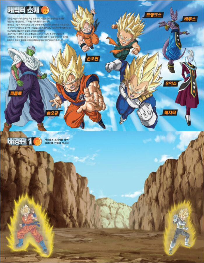 드래곤볼 슈퍼 배경판에 스티커를 붙이고 이야기를 만들어요.
