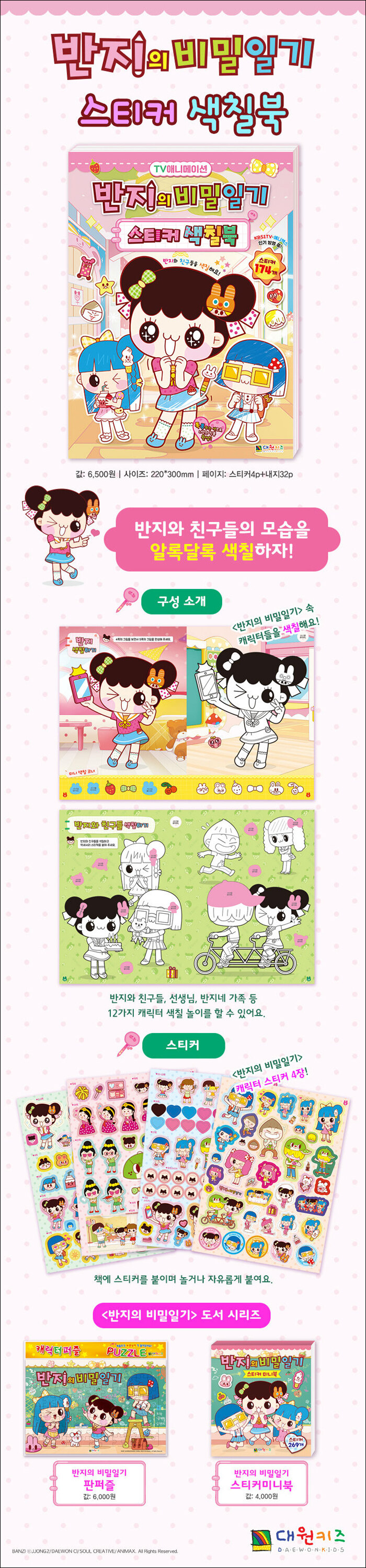 ♣ <반지의 비밀일기 스티커 색칠북> 책 소개엉뚱발랄한 소녀들의 얼렁뚱땅 비밀 이야기!