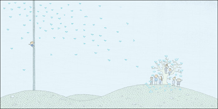 아름다운 일러스트와 함께 하는 비행미로를 풀다보면 반복적으로 나타나는 이미지가 있어요. 보이나요? 바로, 종이학·종이배·종이비행기입니다. 종이로 접어서 만든 학을 선물하면 소원이 이뤄진다고 해요. 종이배와 종이비행기는 메시지를 담아 멀리멀리 보낼 수 있지요. 받는 사람이 아무리 멀리 있어도 마음을 전할 수 있어요. 이 많은 조각들이 어디서 온 것일까요? 어떤 염원을 담고 있는지는 미로를 끝까지 푼 친구들만이 알 수 있을 거예요. 궁금하지 않은가요?