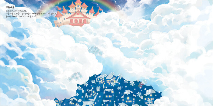 - 붙였다 뗐다 할 수 있는 스티커 515개 (금박 스티커 114개 포함)크리스마스 눈 내리는 구름 마을에서 선물 공장 산타 마을까지! 크리스마스에 눈이 내리기 위해 구름마을 요정들은 눈 농사를 지어 화이트 크리스마스를 위해 눈을 뿌릴 준비를 하고 있어요. 눈송이 하나하나 만들어서 뿌리는 요정들을 꾸며볼 수 있답니다. 크리스마스를 준비하는 두나, 제시, 루니, 세나는 산타 할아버지가 선물을 걸어둘 크리스마스트리를 꾸며 볼 수 있어요. 금박 스티커로 더욱더 화려하고 아름다운 트리를 꾸며볼까요?