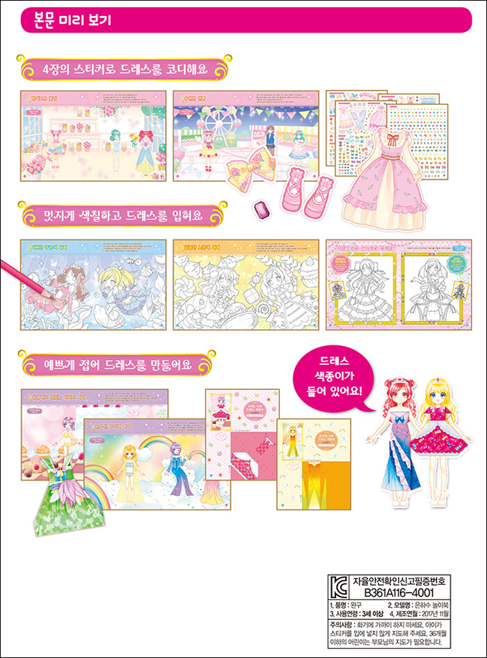5. 로즈 공주 릴리 공주 마리 공주의 종이접기 드레스 입히기