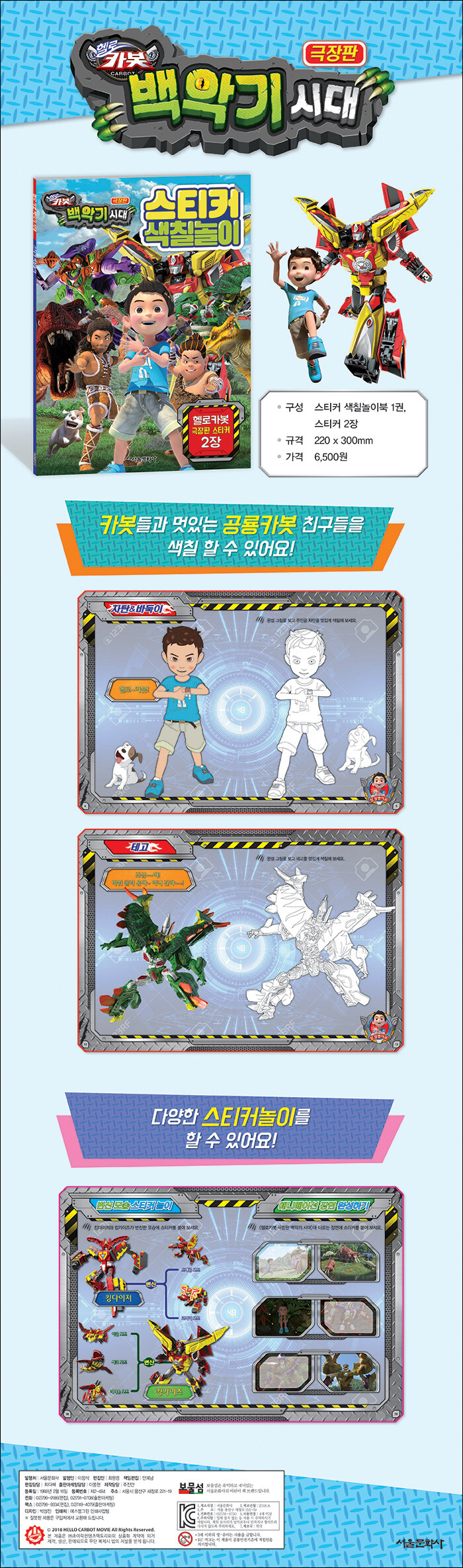 한층 더 새로워진 헬로 카봇 친구들을 스티커 색칠놀이북에서 만난다. 멋진 카봇들과 함께 스티커도 붙이고 다양한 게임도 할 수 있다. 차탄과 공룡카봇들이 펼치는 백악기 시대의 놀라운 모험이 펼쳐진다.