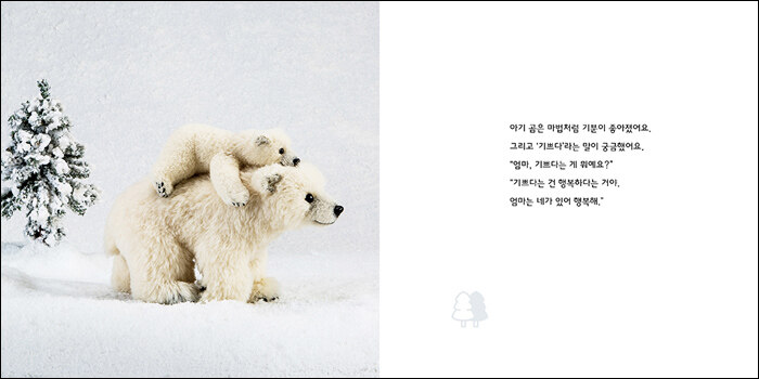 그러다 보면 아기 곰처럼 우리 아이들도 스스로 생각해 볼 수도 있을 거예요. 감정을 공감할 줄 아는 능력은 우리 아이들이 살아가는 데 무엇보다 중요하게 작용을 할 것입니다. 타인을 배려하고 존중할 줄 아는 마음을 심어 주세요. 엄마와 아빠, 그리고 아이가 함께 기쁘다는 감정과 행복하다는 감정, 그리고 또 여러 감정들에 대해 이야기하는 것도 좋습니다.