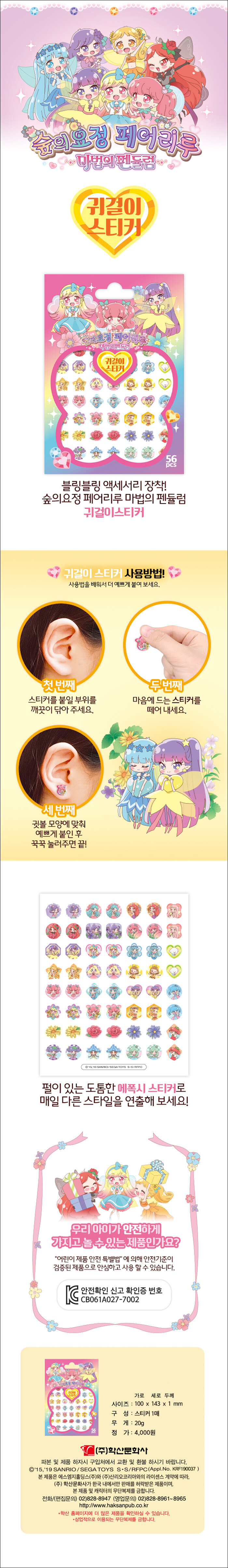다양한 종류의 귀걸이 스티커가 있기 때문에 그날의 기분에 따라 블링블링하게 꾸밀 수 있다. 귀에 밀착되어 일상생활에 불편없이 사용할 수 있다. 1매 안에 여러가지 캐릭터가 들어있어 아이들이 좋아하는 스티커를 고를 수 있다.