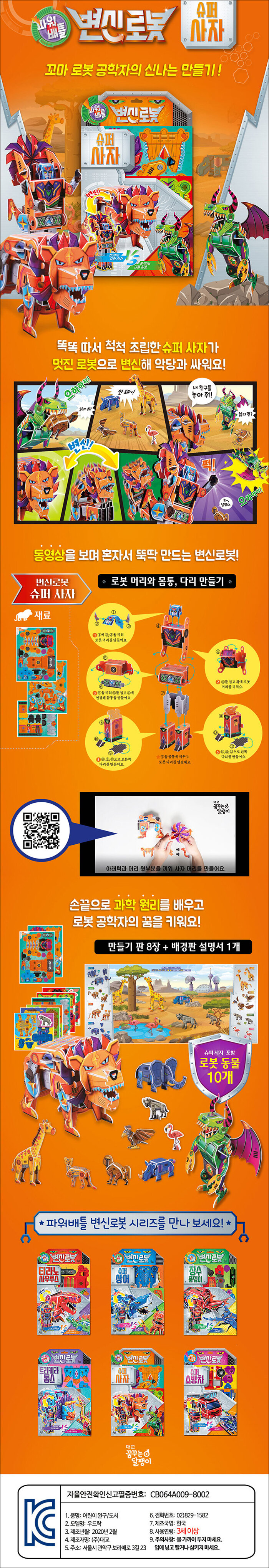 *만들기 목록 - 총 10개변신로봇 슈퍼 사자 / 괴물 황소 / 코끼리 / 원숭이 / 치타 / 코뿔소 / 기린 / 독수리 / 하이에나 / 홍학