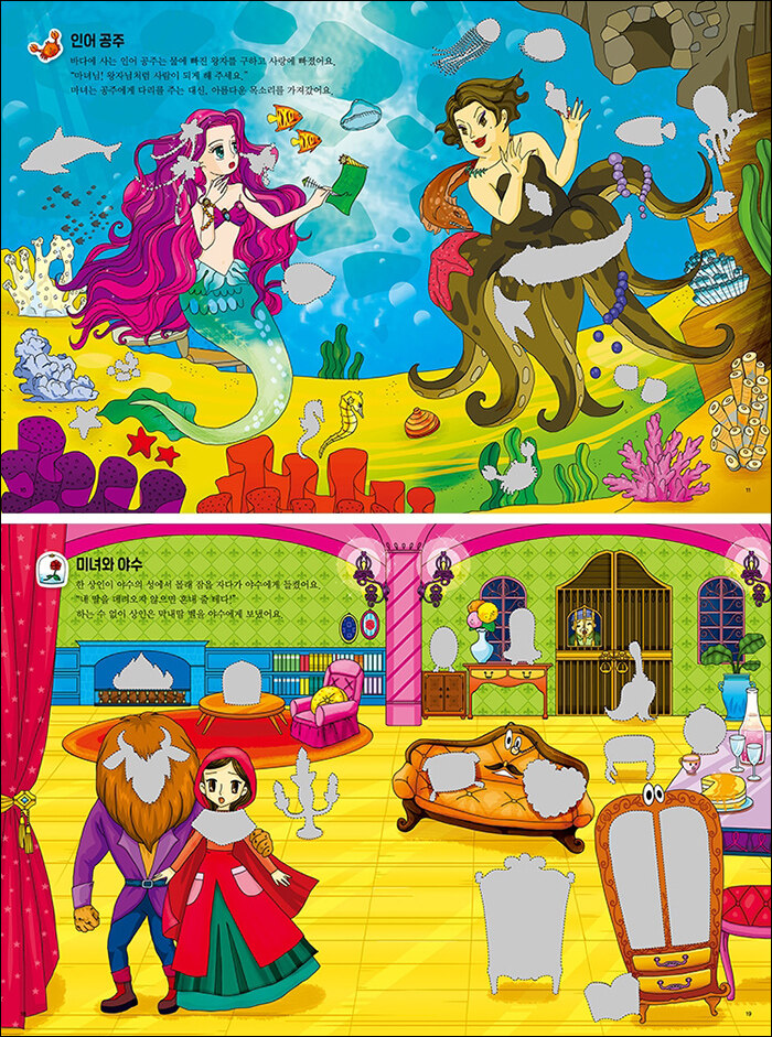 동화 속 공주님백설 공주, 신데렐라, 인어 공주, 잠자는 숲속의 공주, 미녀와 야수의 벨을 만나고 싶다고요? 그럼, 책장을 들춰 보세요. 동화 속 공주님들이 여러분을 기다라고 있답니다. 여러 스티커를 붙이며, 예쁜 공주 이야기에 푹 빠져 보세요.