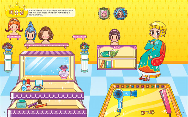 비비공주가 사는 아름다운 궁전에는 어떤 곳들이 있는지 살펴보고 마음대로 스티커를 붙여서 더 아름답게 꾸며 보세요.