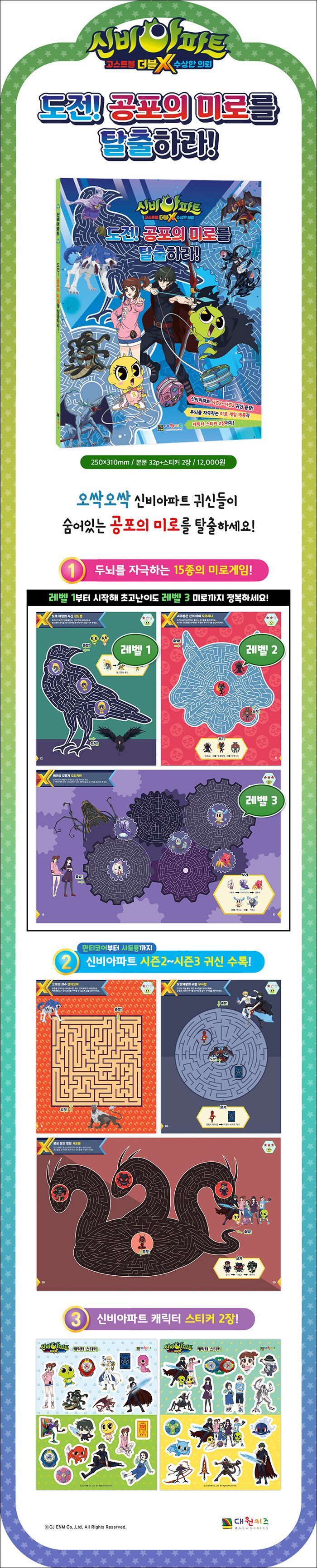더 무시무시한 귀신들과 복잡한 미로로 돌아온 신비아파트 미로 게임에 도전해 보자. 레벨 1부터 시작해 초고난이도 레벨 3 미로까지, 두뇌를 자극하는 총 15종의 미로게임으로 사고력과 집중력을 키워 준다.