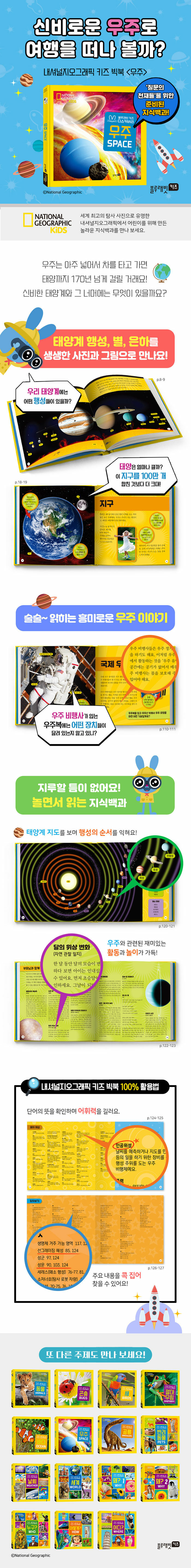 전 세계 아이들에게 사랑받는 내셔널지오그래픽 키즈의 지식백과!전 세계 450만 어린이 독자를 보유한 내셔널지오그래픽 키즈에서 기획한 지식백과를 '내셔널지오그래픽 키즈 빅북' 시리즈로 만나 보세요. 과학 탐험 분야에서 세계 최고의 권위를 자랑하는 내셔널지오그래픽의 오리지널리티를 고스란히 담아 지식도, 재미도 놓치지 않는 지식백과로 탄생했어요.