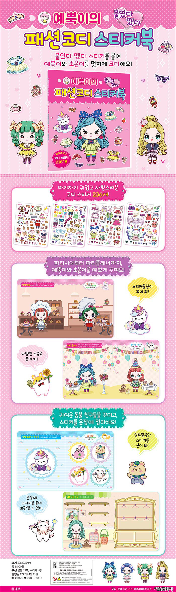 예뿍이와 초은이를 멋지게 꾸며요!사랑스러운 예뿍이와 초은이를 〈예뿍이의 붙였다 뗐다 패션 코디 스티커북〉으로 만나 보세요!