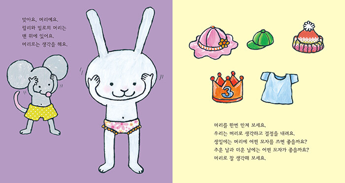 머리는 생각을 해요. 다리로는 달릴 수 있지요. 눈, 코, 귀는 무엇을 할까요? 그리고 입은요?