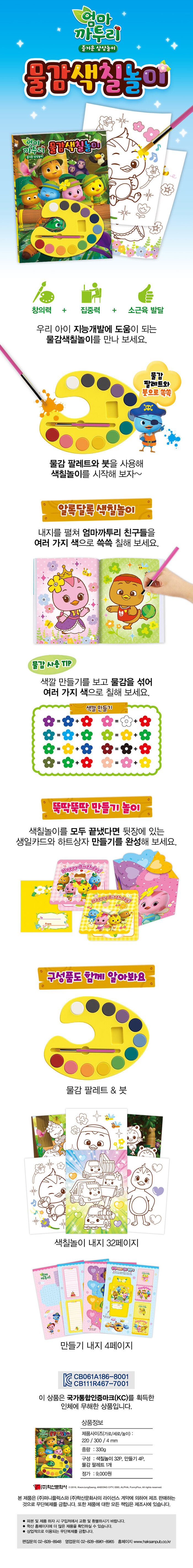 셋, 색칠놀이하고 만들기 놀이까지 일석이조!물감 색칠놀이는 만들기 2장이 들어 있어 가위로 오리고 만드는 활동을 통해 큰 재미를 느낄 수 있습니다.